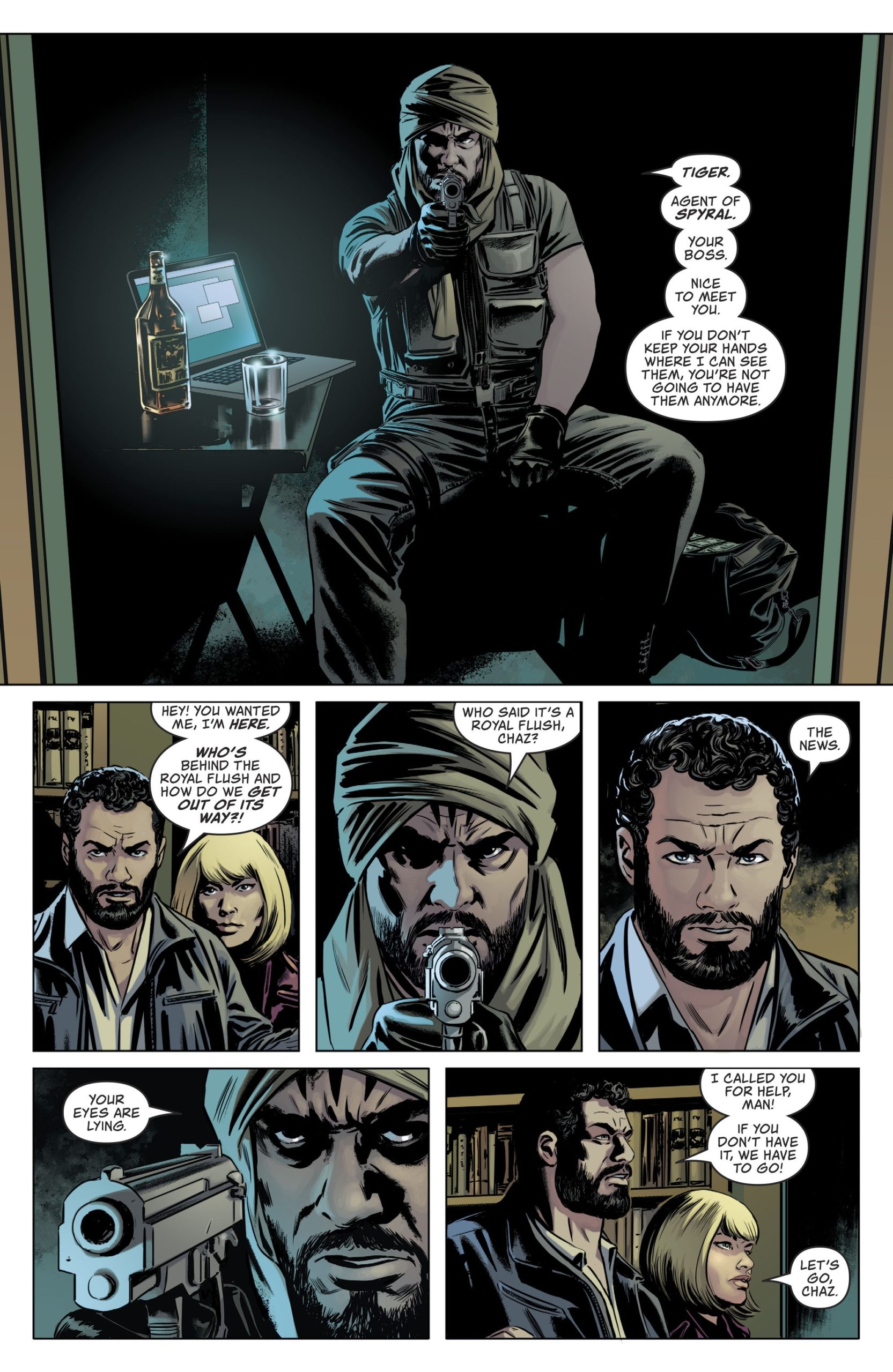 Równolegle Clark i Lois działają incognito jako agenci Spyral – pod pseudonimami Chaz i Andi – i docierają do Londynu, by śledzić tropy wskazujące na powiązania Leviathana z destrukcją struktur wywiadowczych. Tam spotykają agenta Tiger, który podejmuje współpracę, lecz zaraz pojawia się ogromny pancerzowy byt będący manifestacją jednego z niebieskich bytów. Superman wychodzi z konfrontacji, podrzucając potwora w kosmos, co powoduje falę energii powracającą na Ziemię i burzącą stabilność.