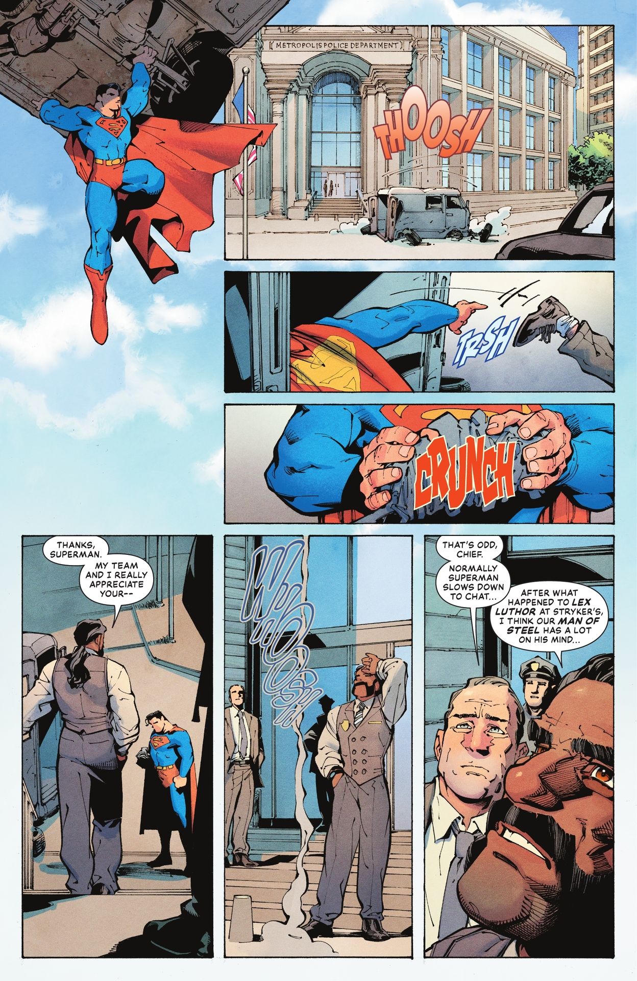 Superman, Mercy i zespół Supercorp docierają do Stryker’s Island, gdzie Superman przeciska się przez skały do samej celi. Po wejściu pojawia się mechanizm, który rozpoznaje go jako przywódcę Supercorp i odblokowuje drzwi. W środku znajduje się mężczyzna związany przypiętymi łańcuchami, z hełmem deprywacji sensorycznej. Gdy Superman i Mercy wspominają Lexa, więzień wpada w furię i atakuje, wykazując potężne zdolności psychokinetyczne. W trakcie walki wiąże Supermana łańcuchami i unosi się w powietrze, odlecając nad miasto. Superman nie potrafi się uwolnić, a Mercy przekonuje go, że tylko Luthor mógłby uwolnić więźnia. W finale wiemy, że więzień chce, by Metropolis poznało ból jego cierpienia — równocześnie Lex Luthor w więzieniu budzi się ze swojej śpiączki, co sugeruje powiązanie tych dramatów.